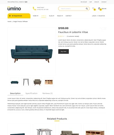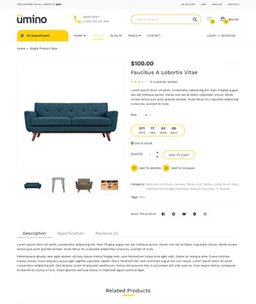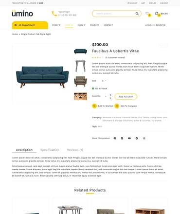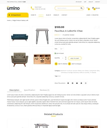 umino Furniture & Interior eCommerce Bootstrap 4 Template